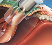 2. Далее через этот же прокол 2 мм вводится в глаз мягкая свёрнутая интраокулярная линза, которая устанавливается на месте старого мутного хрусталика.